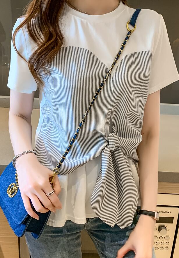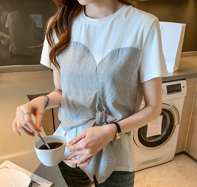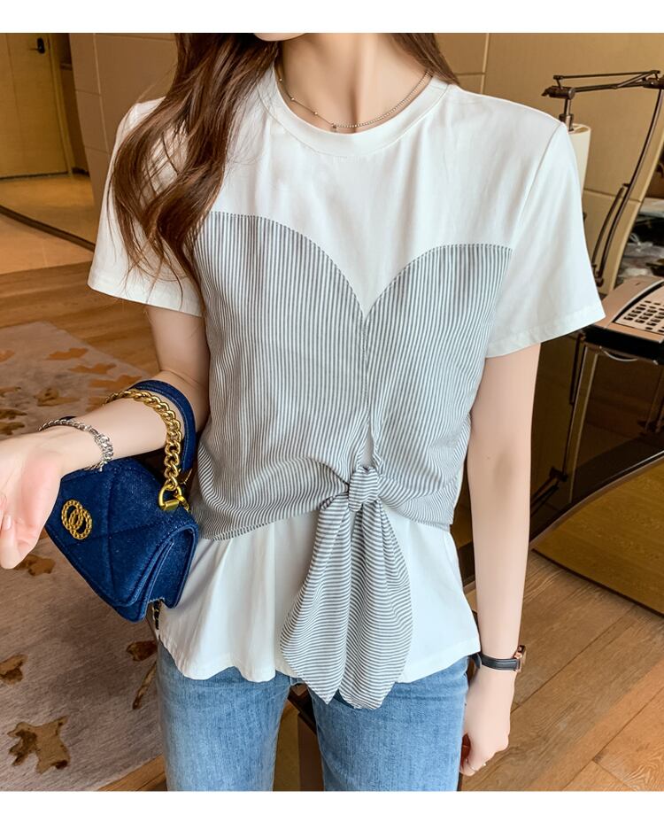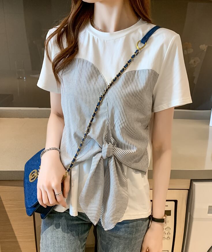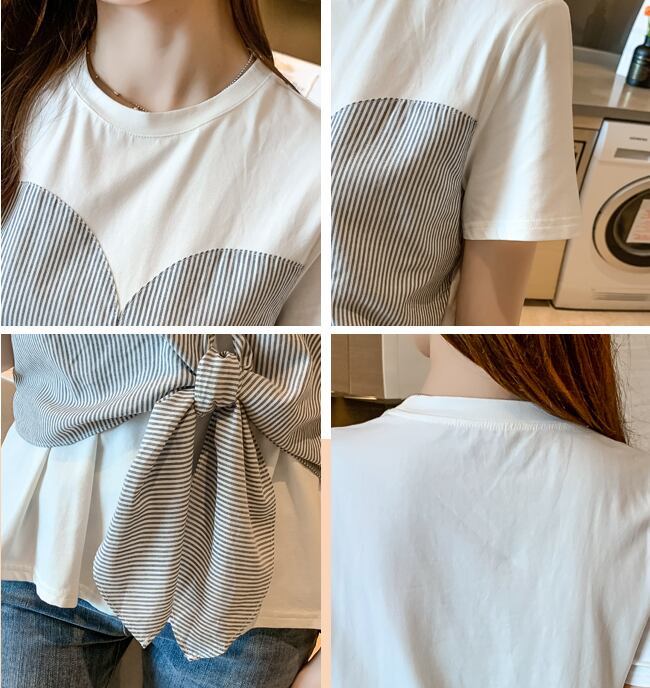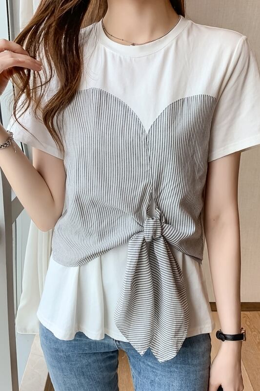 ドッキングTシャツ トップス Tシャツ 袖あり 半袖 ラウンドネック ドッキング リボン ドッキング かわいい 大人可愛い きれいめ シンプル カジュアル 大人 上品 おしゃれ お洒落 大人可愛い 大人女子 こなれ感 ラフ ラブリー キュート ガーリー モダン 主役級 存在感 無地 柄 ストライプ 春 夏 10代 20代 30代 レディース 学生 通学 デート お出かけ 女子会 休日 着回し 普段使い 重ね着 韓国系 オルチャン サイズ S M L XL 2XL 色展開 白 ホワイト