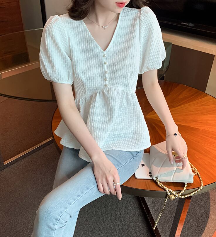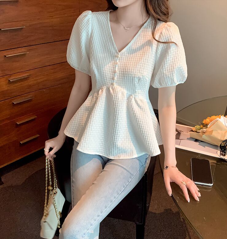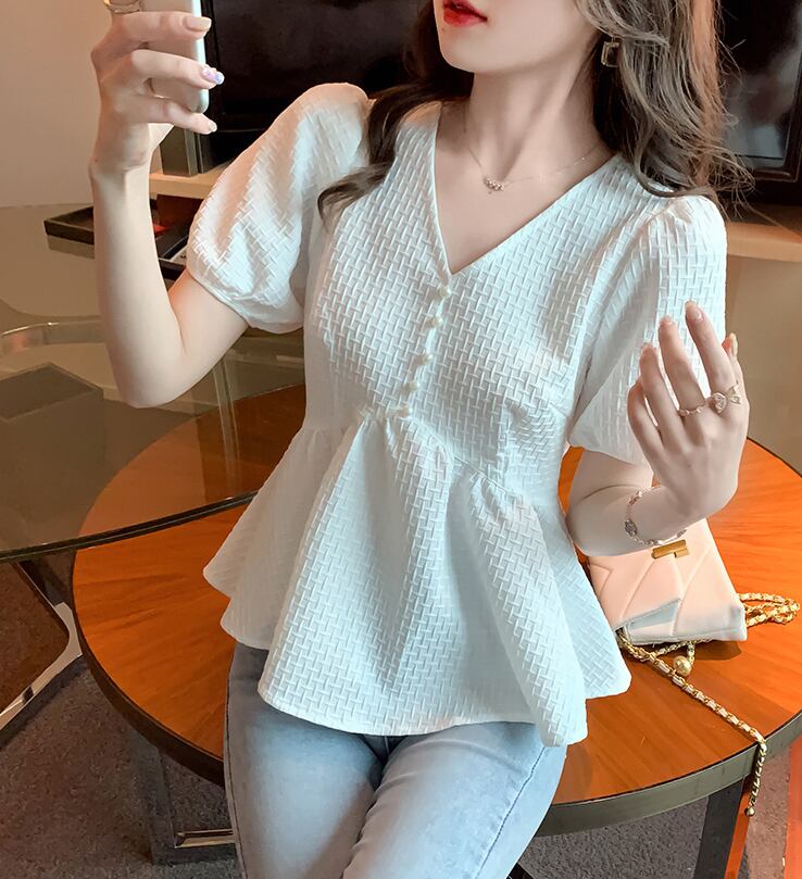 ペプラムブラウス トップス ブラウス 袖あり 半袖 パフスリーブ Vネック フレア ペプラム 切り替えデザイン ハイウエスト かわいい 大人可愛い きれいめ シンプル カジュアル 大人 上品 おしゃれ お洒落 大人可愛い 大人女子 こなれ感 ラフ ラブリー キュート ガーリー モダン 主役級 存在感 無地 春 夏 10代 20代 30代 レディース OL 通勤 学生 通学 デート お出かけ 女子会 休日 着回し 普段使い 重ね着 サイズ S M L XL 色展開 白 ホワイト