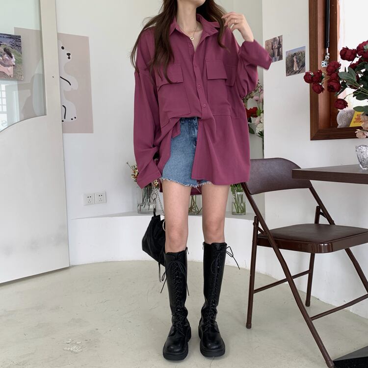 長袖シャツ トップス シャツ 袖あり 長袖 襟付き 前開き かわいい 大人可愛い きれいめ シンプル カジュアル 大人 上品 おしゃれ お洒落 大人可愛い 大人女子 こなれ感 ラフ ラブリー キュート ガーリー モダン 主役級 存在感 無地 春 秋 10代 20代 30代 レディース OL 通勤 学生 通学 デート お出かけ 女子会 休日 着回し 普段使い 重ね着 サイズ S M L XL 2XL 3XL 4XL 5XL 色展開 紫 パープル オレンジ アプリコット