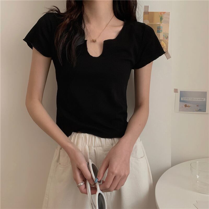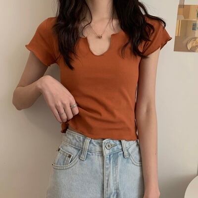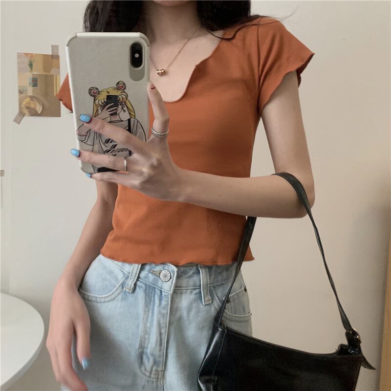 ハートネックTシャツ トップス Tシャツ ショート ショート丈 袖あり 半袖 かわいい 大人可愛い きれいめ シンプル カジュアル 大人 上品 おしゃれ お洒落 大人可愛い 大人女子 こなれ感 ラフ ラブリー キュート ガーリー モダン 主役級 存在感 無地 春 夏 10代 20代 30代 レディース 学生 通学 デート お出かけ 女子会 休日 着回し 普段使い 重ね着 サイズ S M L 色展開 白 ホワイト 黒 ブラック 灰色 グレー オレンジ