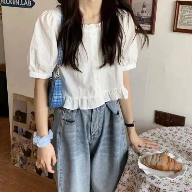 半袖ブラウス トップス ブラウス ショート ショート丈 袖あり 半袖 パフスリーブ スクエアネック フリル 前開き かわいい 大人可愛い きれいめ シンプル カジュアル 大人 上品 おしゃれ お洒落 大人可愛い 大人女子 こなれ感 ラフ ラブリー キュート ガーリー モダン 主役級 存在感 無地 春 夏 10代 20代 30代 レディース OL 通勤 学生 通学 デート お出かけ 女子会 休日 着回し 普段使い 重ね着 韓国系 オルチャン サイズ M L XL 2XL 3XL 4XL 色展開 ホワイト