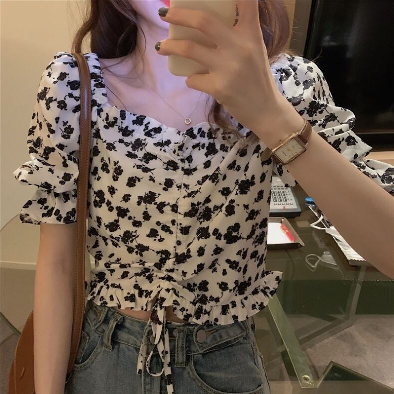 花柄ブラウス トップス ブラウス ショート ショート丈 袖あり 半袖 パフスリーブ スクエアネック フリル リボン かわいい 大人可愛い きれいめ シンプル カジュアル 大人 上品 おしゃれ お洒落 大人可愛い 大人女子 こなれ感 ラフ ラブリー キュート ガーリー モダン 主役級 存在感 柄 花柄 春 夏 10代 20代 30代 レディース OL 通勤 学生 通学 デート お出かけ 女子会 休日 着回し 普段使い 重ね着 韓国系 オルチャン サイズ S M L 色展開 白 ホワイト
