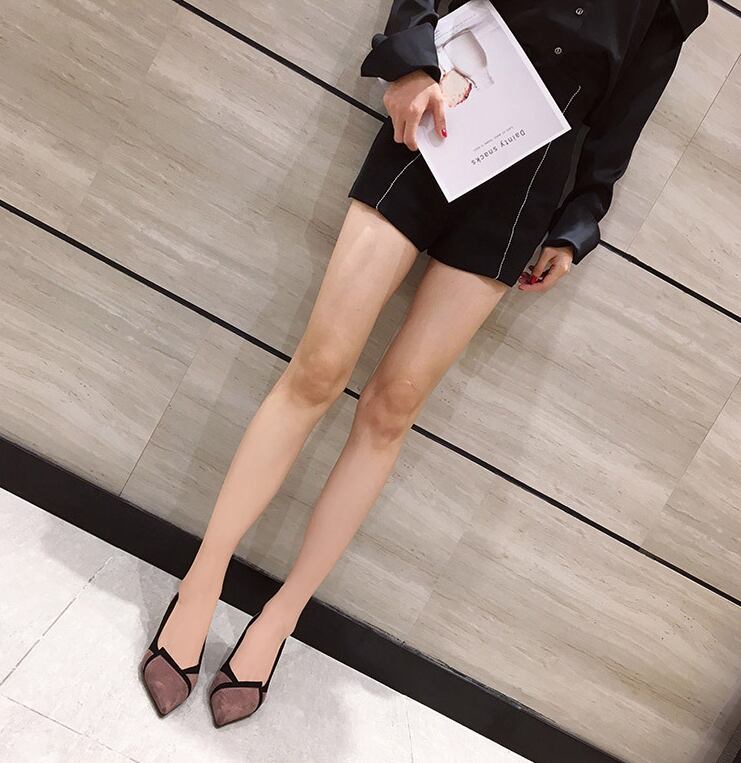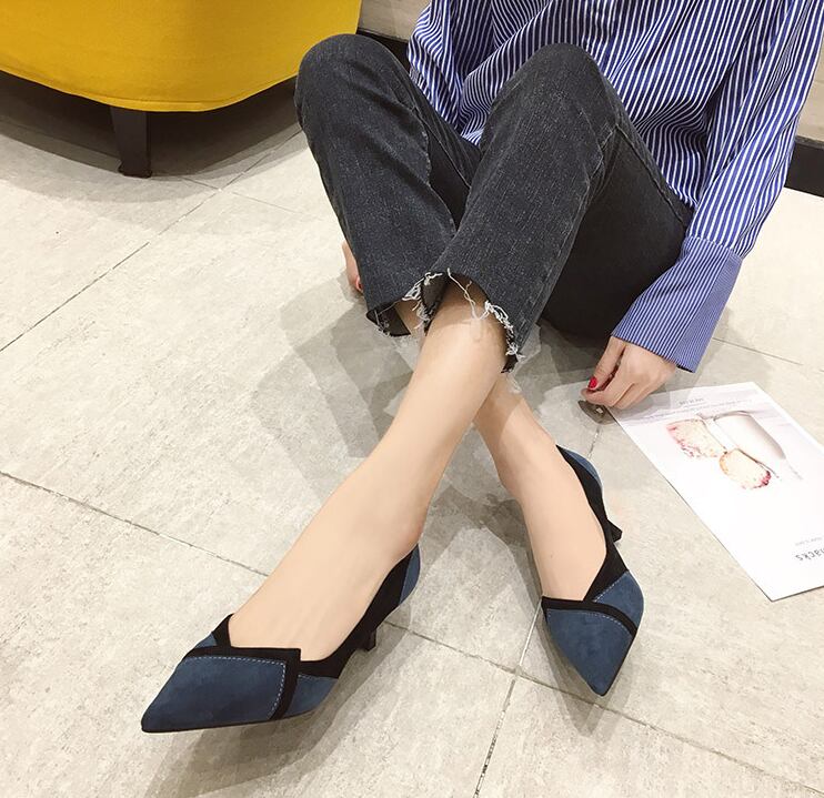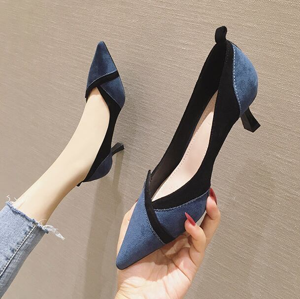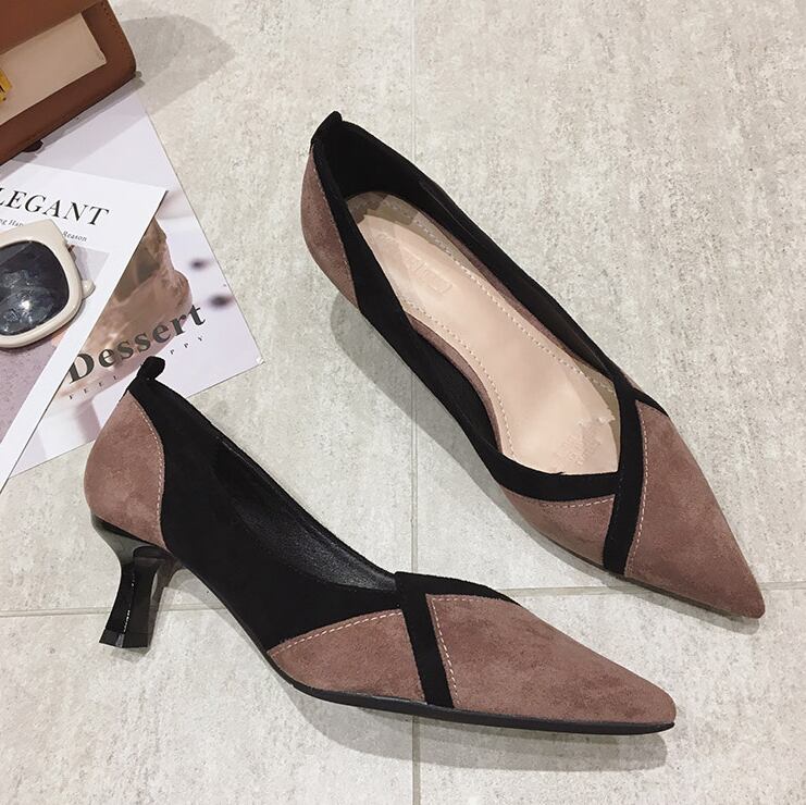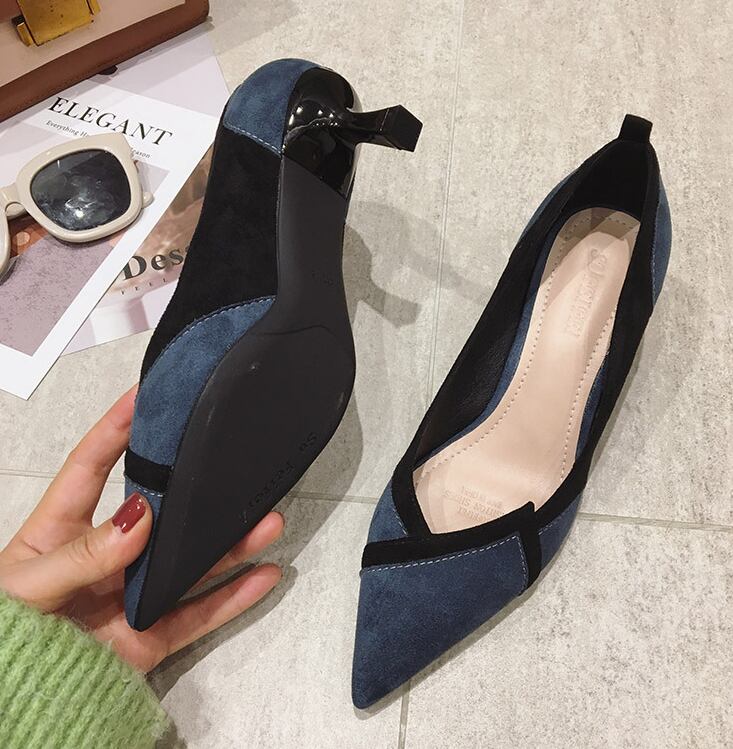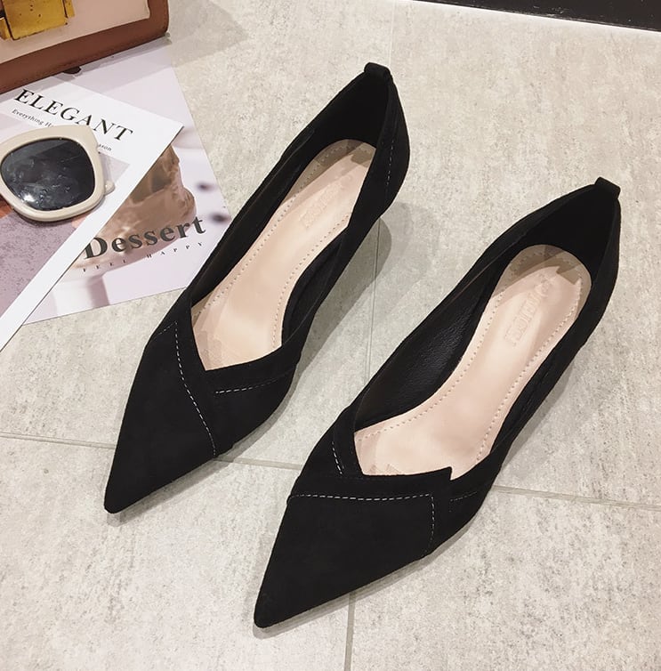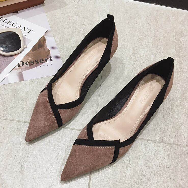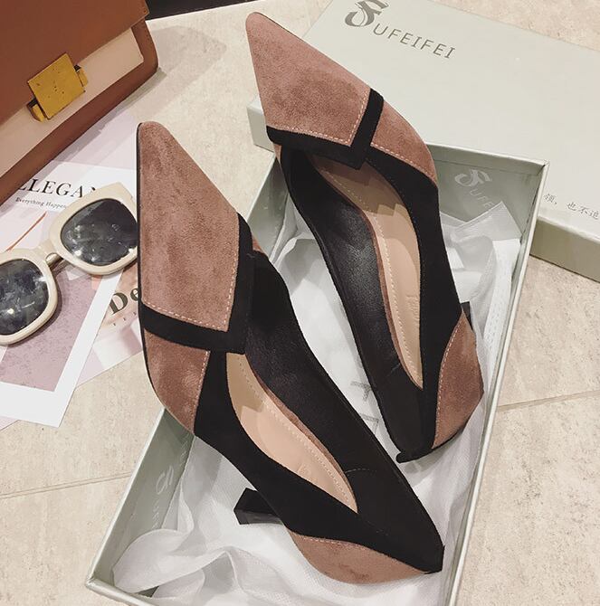 温かみのある質感とバイカラーが印象的なポインテッドトゥパンプス。