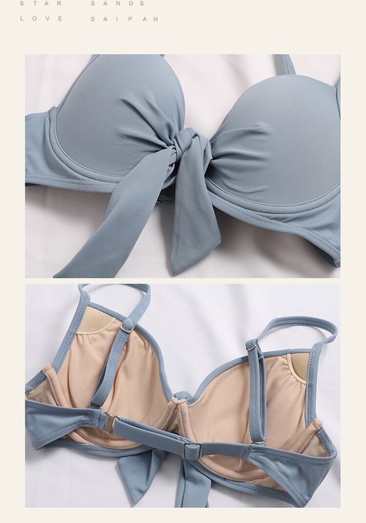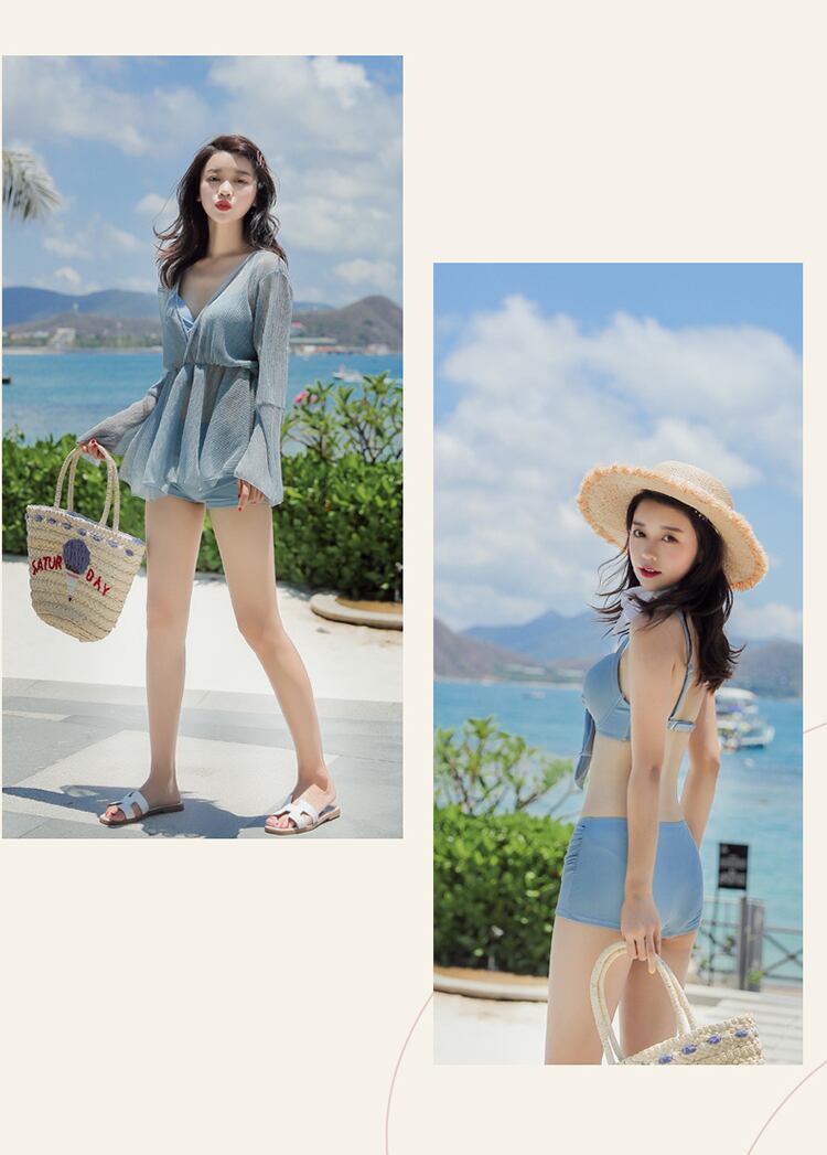 水着 ビキニ スイムウェア ショートパンツ セパレート リボン 伸縮性 3点セット スリーピース お得 かわいい 大人可愛い シンプル カジュアル おしゃれ お洒落 無地 10代 20代 30代 40代 レディース 女性用 ママ 夏 海 ビーチ プール リゾート 旅行 体型カバー M L XL 2XL 青 ブルー