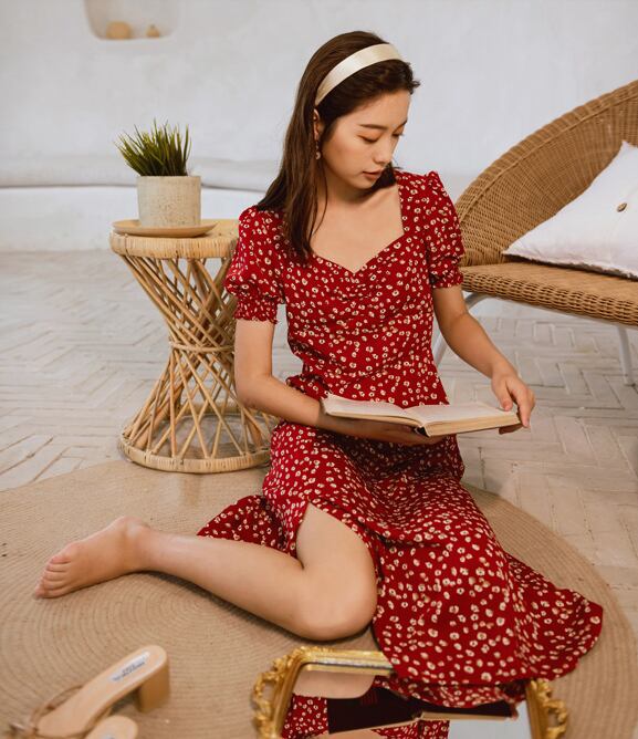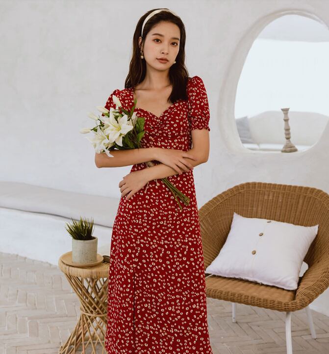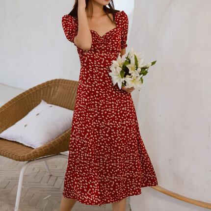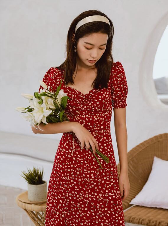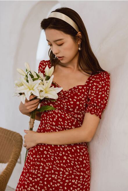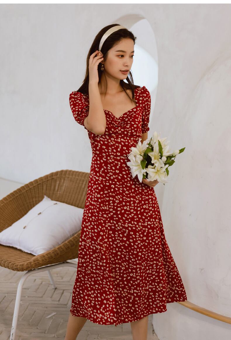 花柄ワンピース ワンピース フレアワンピース ワンピドレス 膝丈 ひざ丈 ミモレ ミモレ丈 袖あり 半袖 パフスリーブ Vネック フレア ハイウエスト ポリエステル かわいい 大人可愛い きれいめ シンプル カジュアル 大人 上品 おしゃれ お洒落 大人可愛い 大人女子 こなれ感 ラフ ラブリー キュート ガーリー モダン 主役級 存在感 柄 花柄 小花柄 春 夏 10代 20代 30代 レディース 学生 通学 デート お出かけ 女子会 休日 着回し 普段使い 重ね着 韓国系 オルチャン サイズ S M