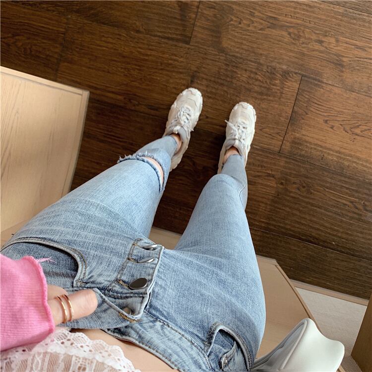 ハイウエストスキニーデニムパンツ ボトムス パンツ デニムパンツ スキニーパンツ 9分丈 スリム タイト 細身 Iライン ハイウエスト デニム かわいい 大人可愛い きれいめ シンプル カジュアル 大人 上品 おしゃれ お洒落 大人可愛い 大人女子 こなれ感 ラフ ラブリー キュート ガーリー モダン 主役級 存在感 無地 春 夏 秋 10代 20代 30代 レディース 学生 通学 デート お出かけ 公園デビュー 女子会 休日 着回し 普段使い 韓国系 オルチャン サイズ S M L XL ライトブルー