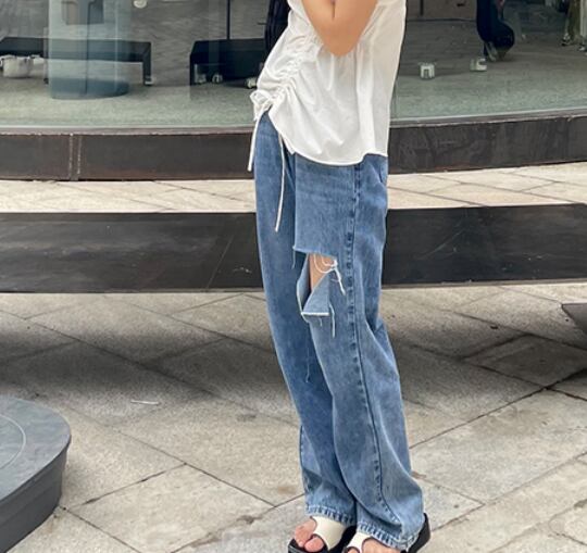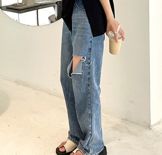 ワイドダメージデニム ボトムス パンツ ロング丈 長袖 ストレート ワイド デニム ブルーデニム 爽やか 大人スタイル かわいい 大人可愛い きれいめ シンプル カジュアル 大人 上品 おしゃれ かっこいい 大人可愛い 大人女子 こなれ感 ラブリー キュート ガーリー 個性的 存在感 春 秋 10代 20代 30代 40代 50代 レディース ママ 女の子 オフィス OL 通勤 学生 デート お出かけ 公園デビュー 女子会 休日 リゾート 旅行 着回し コーデ スタイル モテ サイズ ゆったり 青