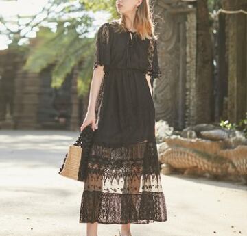 刺繍ワンピース ワンピース ロング丈 半袖 フレア Aライン 光沢 爽やか 大人スタイル かわいい 大人可愛い きれいめ シンプル カジュアル 大人 上品 おしゃれ かっこいい レトロ アジアン 大人可愛い 大人女子 こなれ感 ラブリー キュート 個性的 存在感 無地 春 夏 シーズンレス 10代 20代 30代 40代 50代 レディース ママ 女の子 通勤 学生 通学 デート お出かけ 女子会 休日 リゾート 旅行 着回し コーデ スタイル モテ サイズ XS S 黒 ブラック
