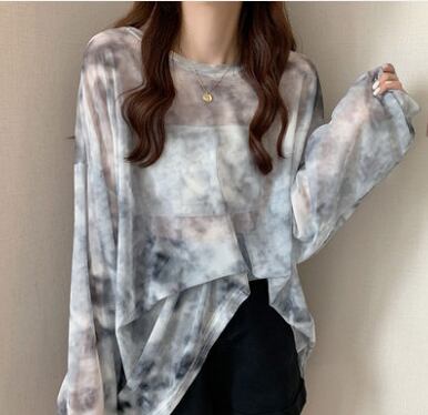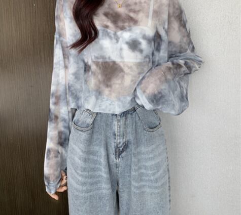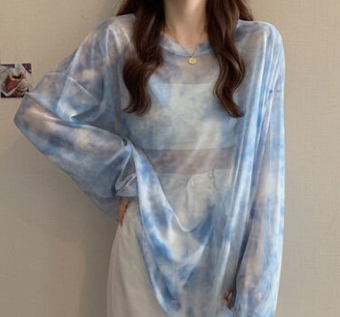 タイダイ柄透け感ロングトップス トップス ブラウス 長袖 透け感 爽やか 大人スタイル かわいい 大人可愛い きれいめ シンプル カジュアル 大人 上品 おしゃれ かっこいい レトロ アジアン 大人可愛い 大人女子 こなれ感 ラブリー キュート 個性的 存在感 無地 春 秋 シーズンレス 10代 20代 30代 40代 50代 レディース ママ 女の子 オフィス ビジネス OL 通勤 学生 通学 デート お出かけ 女子会 リゾート 旅行 着回し コーデ スタイル モテ サイズ フリーサイズ