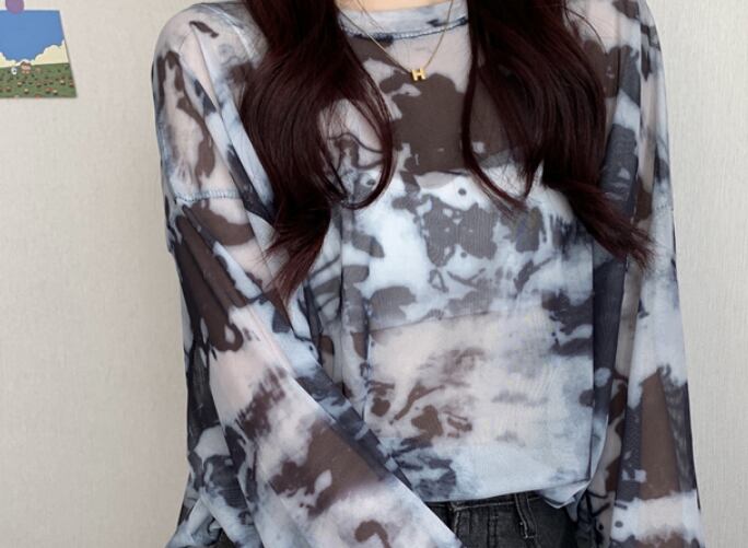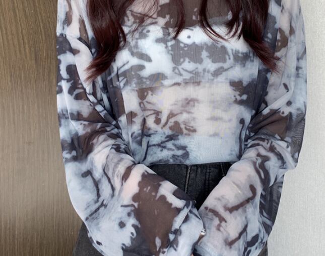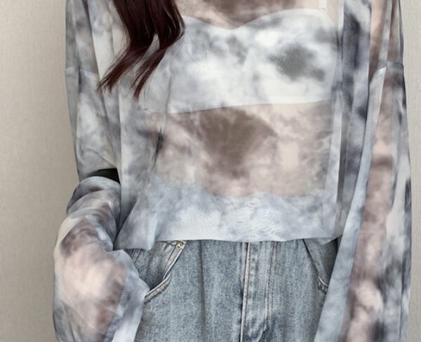 タイダイ模様の透け感のあるロングトップスです。