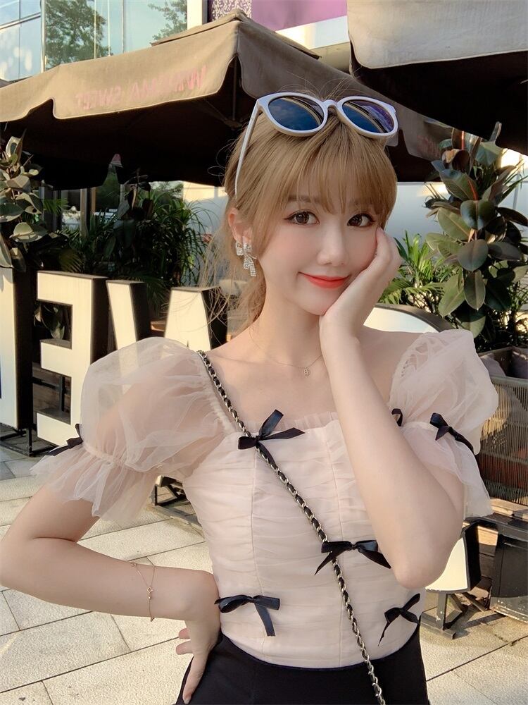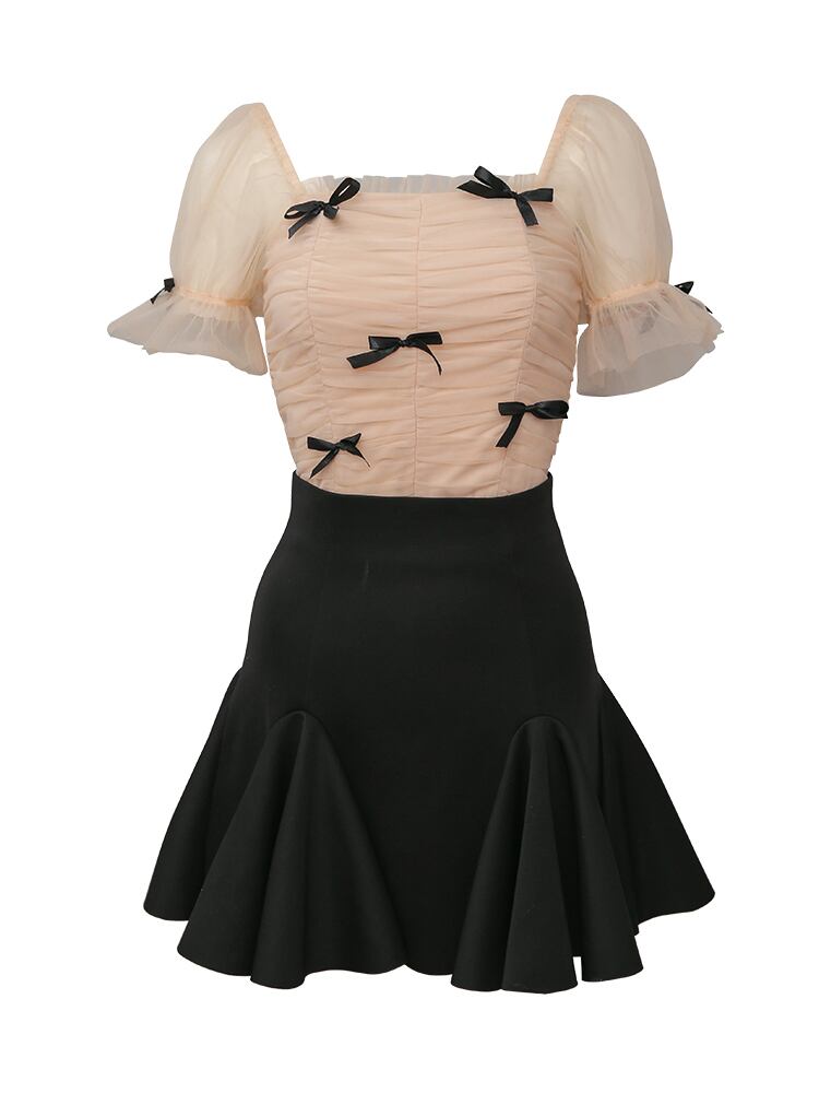 トップス スカート ブラウス ミニスカート ミニ丈 ショート丈 袖あり 半袖 萌袖 袖コンシャス スクエアネック オフショル リボン ハイウエスト 透け感 シースルー 上下セット 2点セット ツーピース かわいい シンプル 上品 おしゃれ お洒落 キュート ガーリー 無地 春 夏 秋 10代 20代 レディース 女性用 デート お出かけ 女子会 休日 着回し 普段使い モテ XS