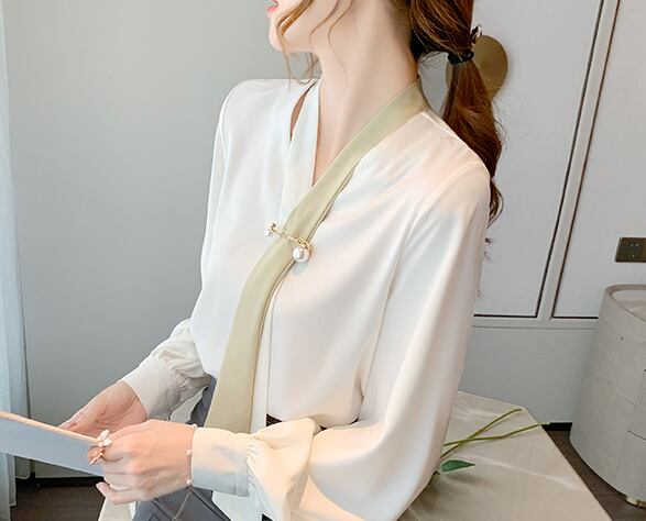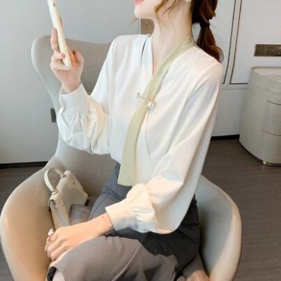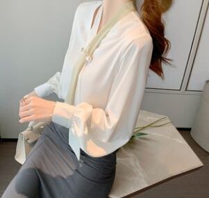 ネクタイ付き長袖ブラウス トップス ブラウス 長袖 光沢 爽やか 大人スタイル かわいい 大人可愛い きれいめ シンプル カジュアル 大人 上品 おしゃれ かっこいい レトロ アジアン 大人可愛い 大人女子 こなれ感 ラブリー キュート 個性的 存在感 無地 春 秋 シーズンレス 10代 20代 30代 40代 50代 レディース ママ 女の子 オフィス ビジネス OL 通勤 学生 通学 デート お出かけ 女子会 リゾート 旅行 着回し コーデ スタイル モテ サイズ S M L