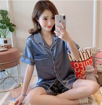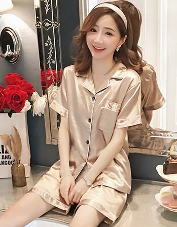 無地&光沢生地の半そで&短パンのパジャマ上下セットです。