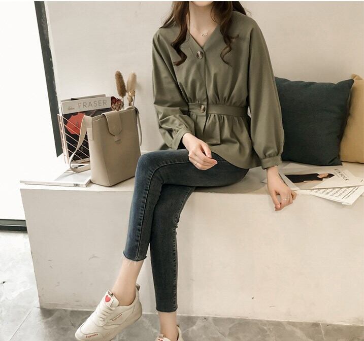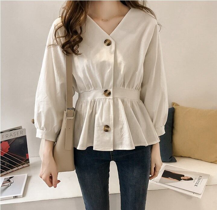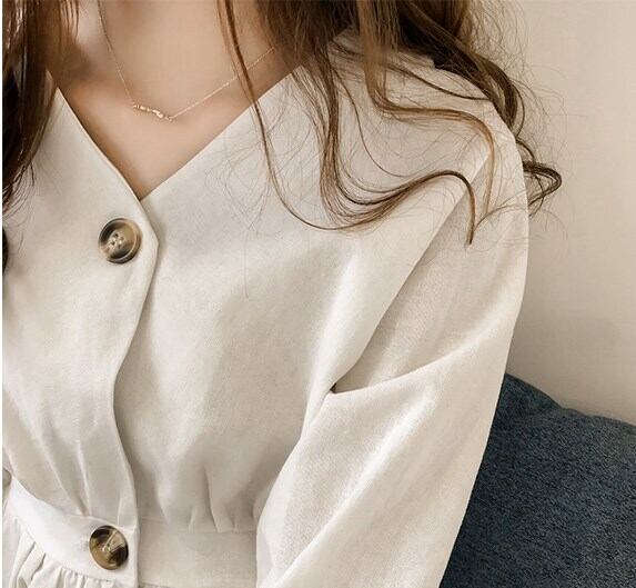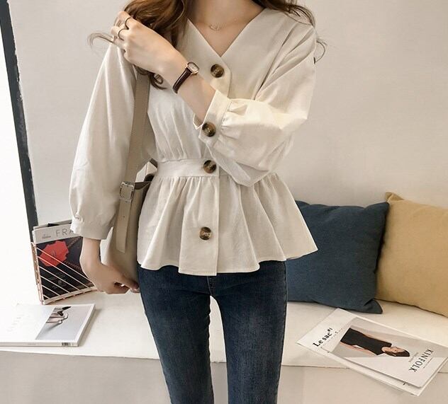 スキニーコットン麻シャツ女性春秋長袖Vネックトップス大サイズ トップス シャツ ミディアム丈 長袖 Vネック ストレート ウエストマーク 大人可愛い きれいめ シンプル カジュアル おしゃれ レトロ アジアン 大人女子 こなれ感 ラフ 無地 春 秋 10代 20代 30代 40代 レディース 女性用 OL 通勤 学生 通学 デート お出かけ お泊まり 休日 旅行 着回し 普段使い M L XL 2XL 3XL 4XL ホワイト ブラック カーキ