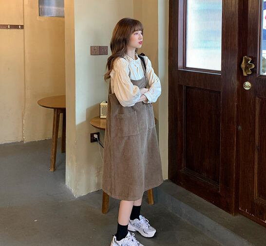 トップス ワンピース ブラウス 膝下 袖あり 長袖 ラウンドネック セミフレア ポケット ハイウエスト 上下セット ツーピース かわいい 大人可愛い カジュアル おしゃれ 大人女子 こなれ感 キュート ガーリー ルーズ 主役級 無地 秋 冬 10代 20代 30代 レディース ママ 学生 デート お出かけ 女子会 休日 イベント 旅行 着回し 普段使い 重ね着 韓国系 ファッション 楽ちん モテ 体系カバー 定番 トレンド インスタ映え サイズ M L XL 2XL 3XL 4XL 色展開 ブラウン