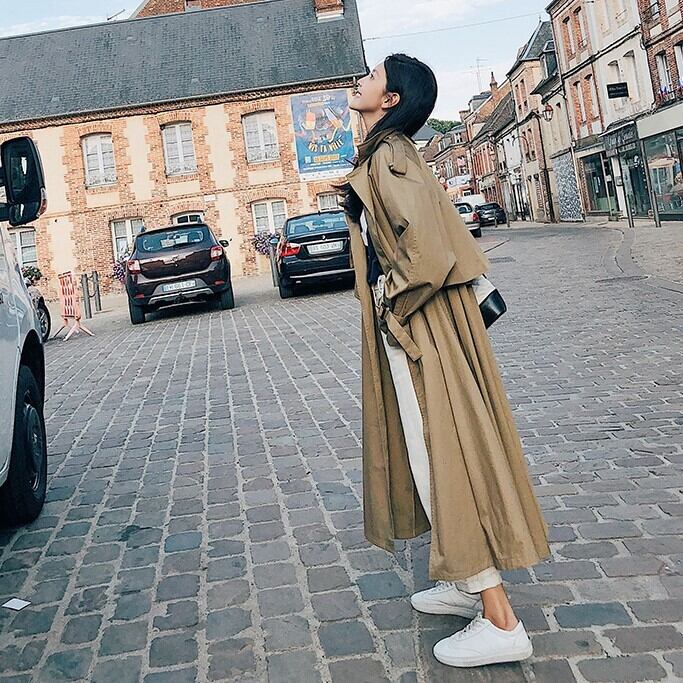 トレンチコート風の、ウインドブレーカーです。ウエストマークが出来るベルト付き。春・秋のライトアウターにいかがでしょうか。ラフなファッションにも綺麗めなワンピースにも合うので、色んな着こなしをお楽しみいただけます。