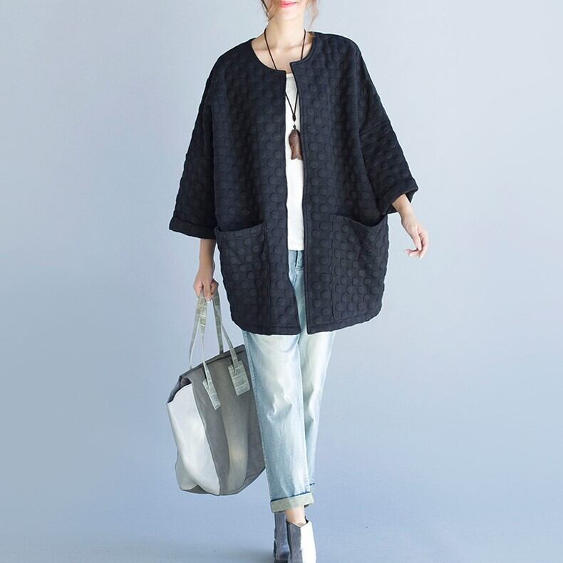 アウター コート ミディアム丈 袖あり 7分袖 フレアスリーブ ラウンドネック ストレート ワイド ポケット 前開き シンプル カジュアル おしゃれ かっこいい レトロ 大人女子 こなれ感 ラフ ルーズ 無地 春 秋 30代 40代 50代 レディース お出かけ 休日 イベント 旅行 着回し 普段使い 重ね着 楽ちん 体系カバー 定番 サイズ XL 2XL 3XL 4XL 大きめ 色展開 黒