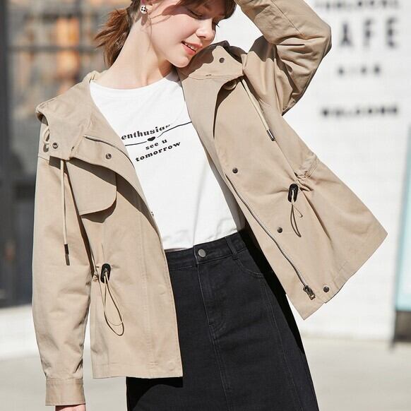 ブルゾン シャンパー ミディアム丈 袖あり 長袖 襟付き フード付き ストレート ファスナー 前開き 2way シャーリング カジュアル おしゃれ かっこいい 大人可愛い 大人女子 ラフ キュート ガーリー クール 存在感 抜け感 無地 春 秋 2022 10代 20代 30代 レディース デート お出かけ 女子会 休日 イベント 旅行 着回し 普段使い 重ね着 モテ 新作 定番 インスタ映え フレンチスタイル サイズ XS S M L 色展開 カーキ