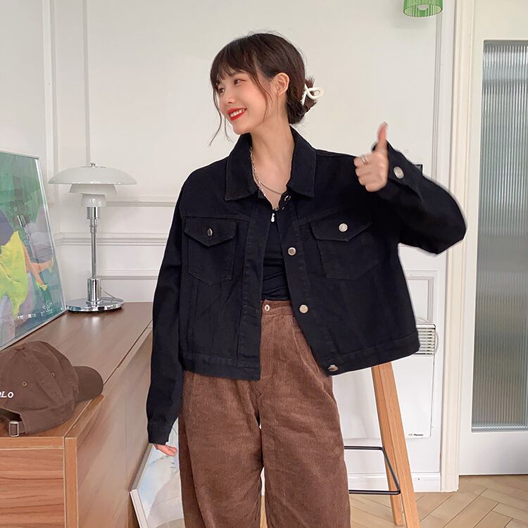 アウター ジャケット シャンパー ショート丈 袖あり 長袖 襟付き POLO襟 ストレート ワイド ポケット 前開き カラーデニム かわいい 大人可愛い シンプル おしゃれ かっこいい 大人女子 こなれ感 ラフ ガーリー ルーズ クール 存在感 無地 春 秋 10代 20代 30代 レディース 学生 デート お出かけ 女子会 休日 アウトドア イベント 旅行 着回し 普段使い 重ね着 韓国系 ファッション 楽ちん モテ 定番 トレンド インスタ映え サイズ S M L 色展開 ブラック アーミーグリーン