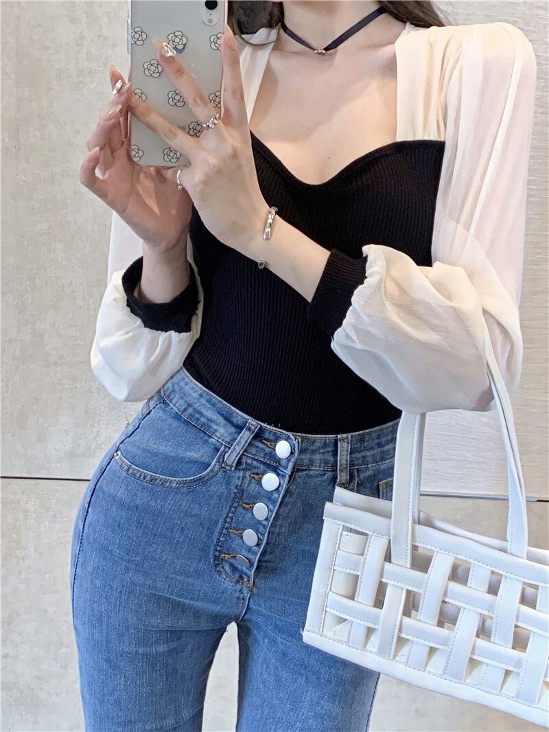 シースルー袖ブラウス トップス ブラウス 袖あり 長袖 Vネック 切り替えデザイン シフォン 切り替えデザイン 透け感 シースルー かわいい 大人可愛い きれいめ シンプル カジュアル 大人 上品 おしゃれ お洒落 大人可愛い 大人女子 こなれ感 ラフ キュート ガーリー 個性的 エレガント モダン 主役級 存在感 とろみ感 無地 春 秋 10代 20代 30代 レディース 着回し 普段使い 重ね着 韓国 韓国系 色展開 黒 ブラック