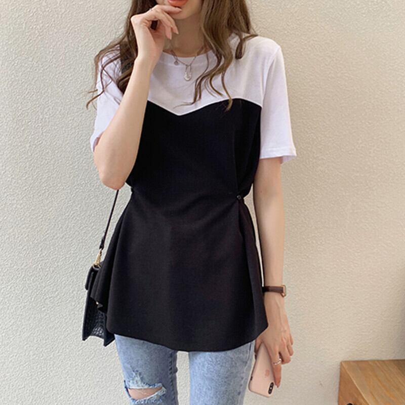 ドッキングTシャツ トップス Tシャツ 袖あり 半袖 ラウンドネック ドッキング ウエストマーク ドッキング かわいい 大人可愛い きれいめ シンプル カジュアル 大人 上品 おしゃれ お洒落 大人可愛い 大人女子 こなれ感 ラフ キュート ガーリー 個性的 エレガント モダン 主役級 存在感 とろみ感 無地 春 夏 10代 20代 30代 レディース 学生 通学 デート お出かけ 公園デビュー 女子会 休日 着回し 普段使い 重ね着 韓国 韓国系 サイズ M L XL 2XL 3XL 4XL 色展開 黒