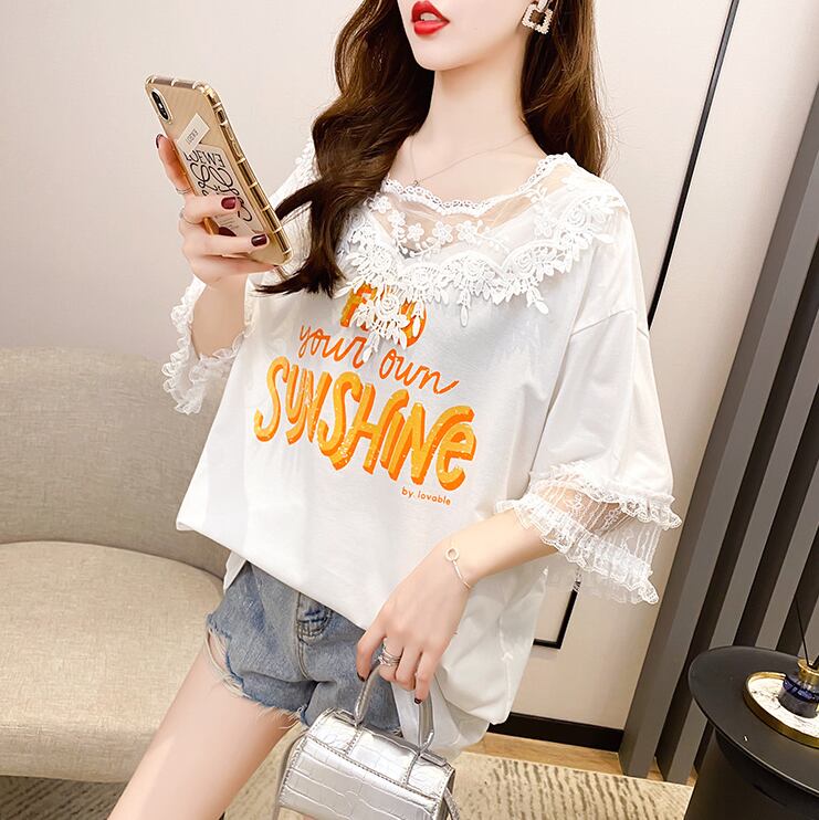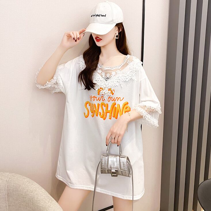 レースロゴTシャツ トップス Tシャツ 袖あり 半袖 ラウンドネック ドッキング レース ドッキング 透け感 綿 ポリエステル かわいい 大人可愛い きれいめ シンプル カジュアル 大人 上品 おしゃれ お洒落 大人可愛い 大人女子 こなれ感 ラフ キュート ガーリー 個性的 エレガント モダン 主役級 存在感 とろみ感 無地 春 夏 10代 20代 30代 レディース 学生 通学 デート お出かけ 公園デビュー 女子会 休日 着回し 普段使い 重ね着 韓国 韓国系 サイズ M L XL 2XL ホワイト