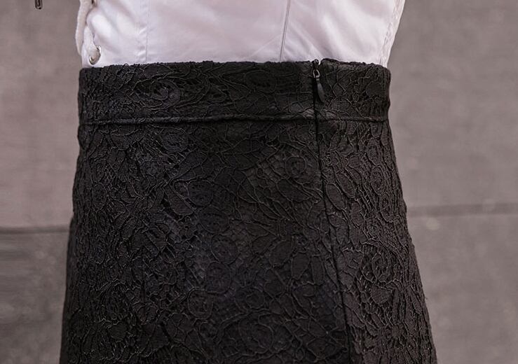 タイトなミディ丈にレースをほどこしたきれいめなスカート。