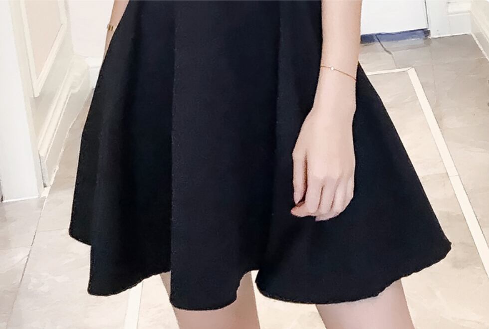 Aラインに広がるスカートが女性らしさを演出。