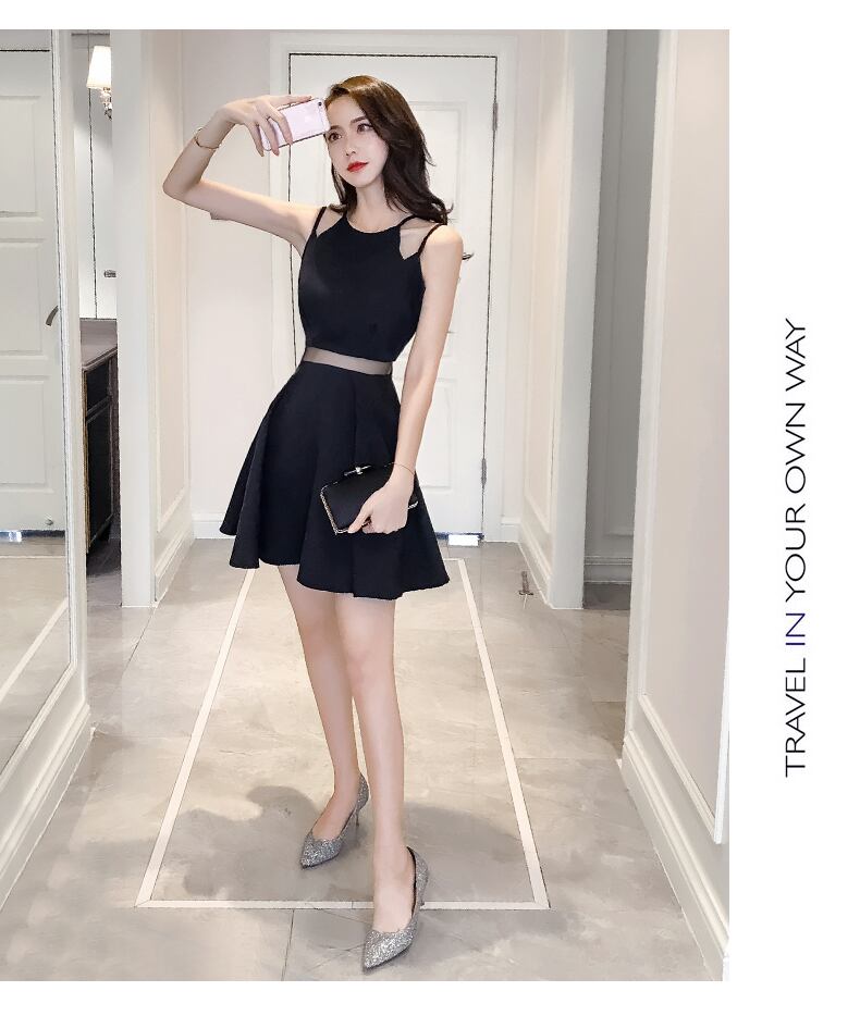 ワンピース ミニ丈 袖なし ノースリーブ フレア Aライン ウエストマーク バックコンシャス ハイウエスト かわいい シンプル おしゃれ お洒落 レトロ 個性的 セクシー 無地 春 夏 10代 20代 レディース 女性用 デート お出かけ 女子会 休日 着回し 普段使い 重ね着 モテ S M L XL 黒 ブラック 緑 グリーン