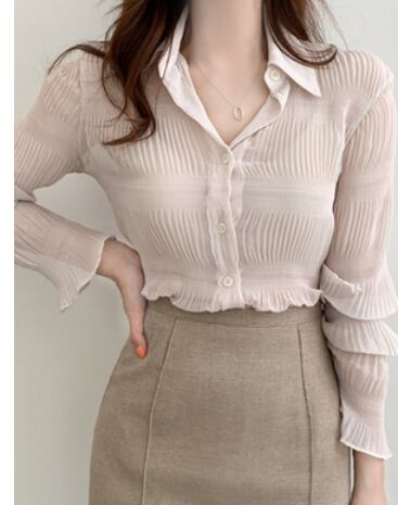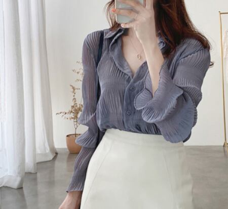 シンプルな大人っぽいシフォン袖ブラウスです。
