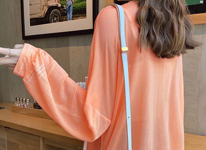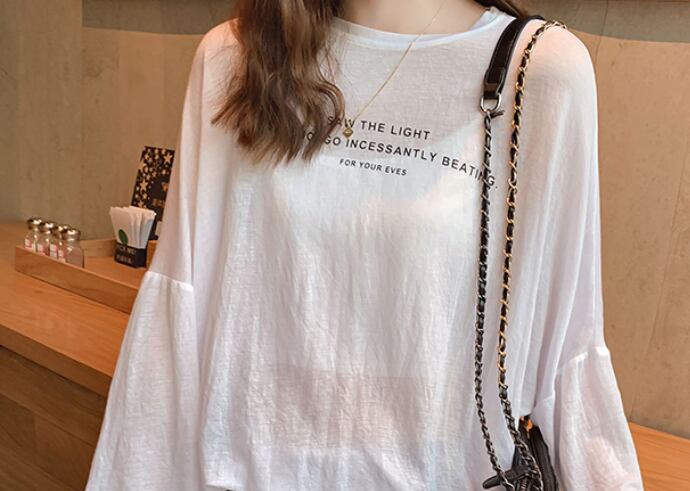 薄手の生地のカジュアルなロゴ入りトップスです。