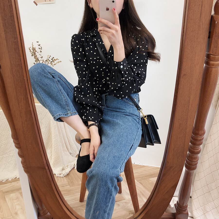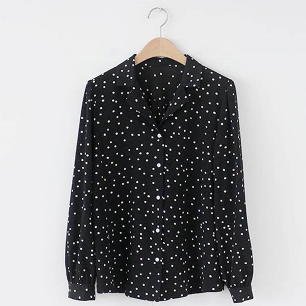 トップス シャツ ミディアム丈 袖あり 長袖 襟付き POLO襟 ストレート シフォン かわいい 大人可愛い カジュアル 上品 おしゃれ 大人女子 こなれ感 キュート ガーリー ルーズ クール 主役級 とろみ感 ドット柄 春 秋 10代 20代 30代 レディース 学生 デート お出かけ 女子会 休日 イベント 旅行 レストラン 着回し 普段使い 重ね着 韓国系 ファッション モテ 定番 トレンド インスタ映え サイズ サイズ展開豊富 色展開 ホワイト ブラック モノトーン