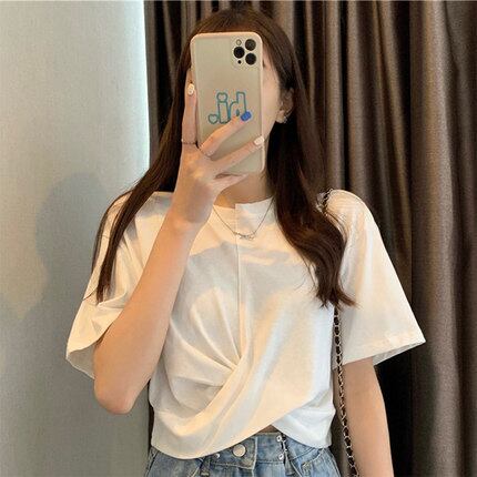 ツイストTシャツ トップス Tシャツ ショート ショート丈 袖あり 半袖 ラウンドネック ポリエステル かわいい 大人可愛い きれいめ シンプル カジュアル 大人 上品 おしゃれ お洒落 大人可愛い 大人女子 こなれ感 ラフ キュート ガーリー 個性的 エレガント モダン 主役級 存在感 とろみ感 無地 春 夏 10代 20代 30代 レディース 学生 通学 デート お出かけ 公園デビュー 女子会 休日 着回し 普段使い 重ね着 サイズ M L XL 色展開 白 ホワイト 黒 ブラック 青 ブルー