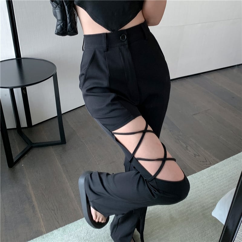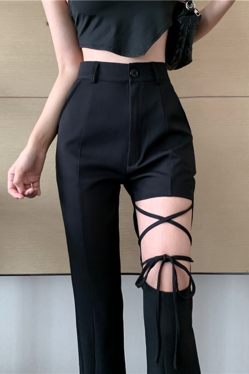 ワンサイドオープン&レースアップデザインが個性を放つパンツ。