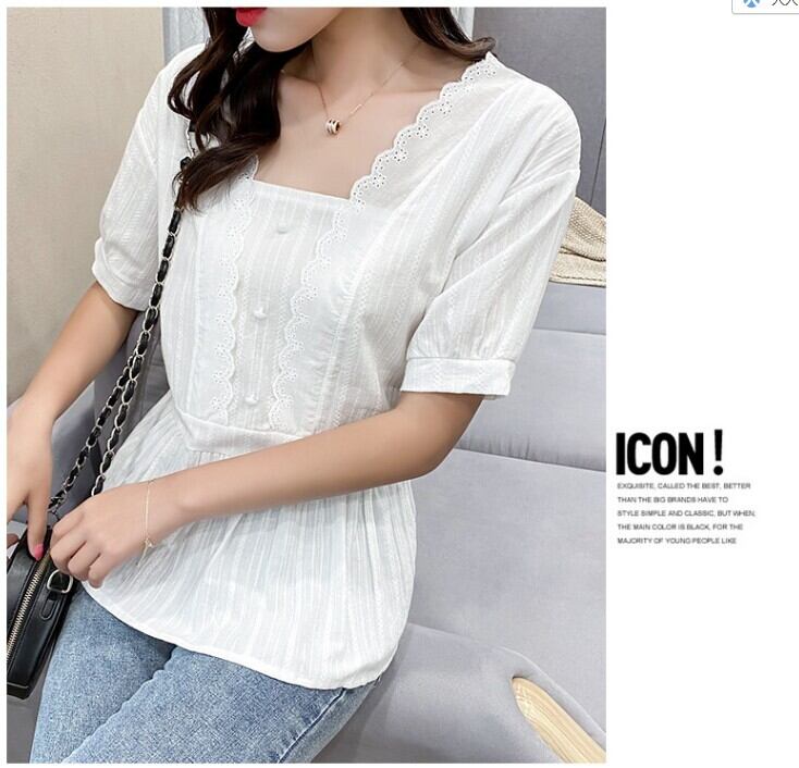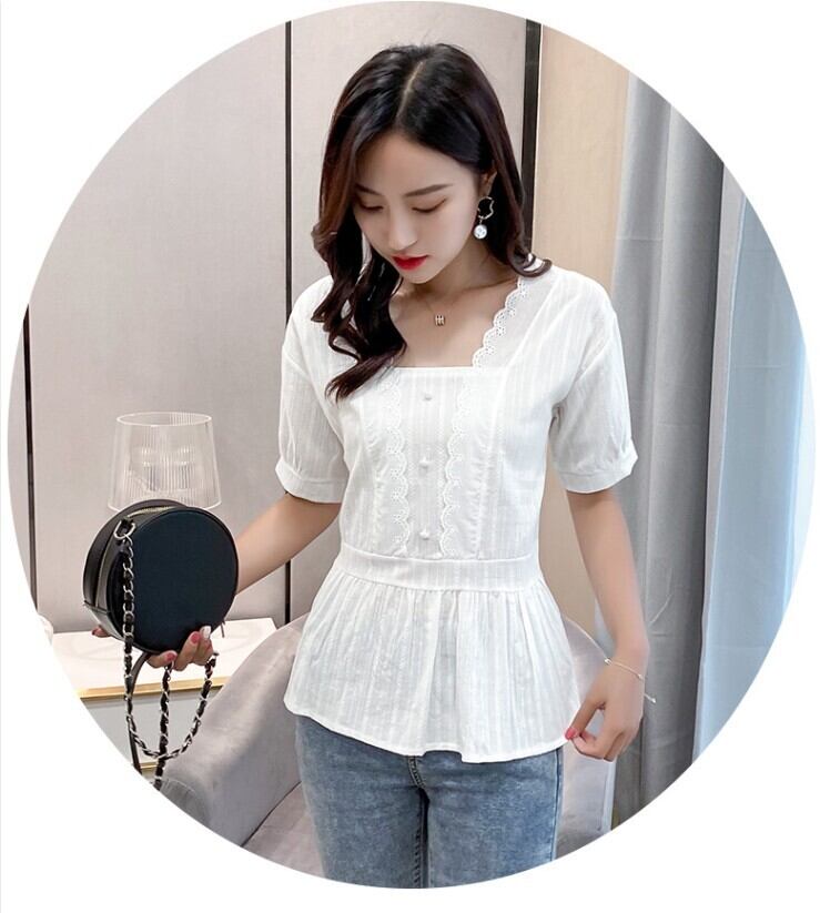 トップス ブラウス 白トップス 袖あり 半袖 切り替えデザイン レース ウエストマーク 透け感 かわいい シンプル カジュアル おしゃれ お洒落 レトロ 大人可愛い 無地 春 夏 10代 20代 30代 40代 レディース 女性用 ママ デート お出かけ 休日 着回し 普段使い M L XL 2XL 白 ホワイト 黒 ブラック