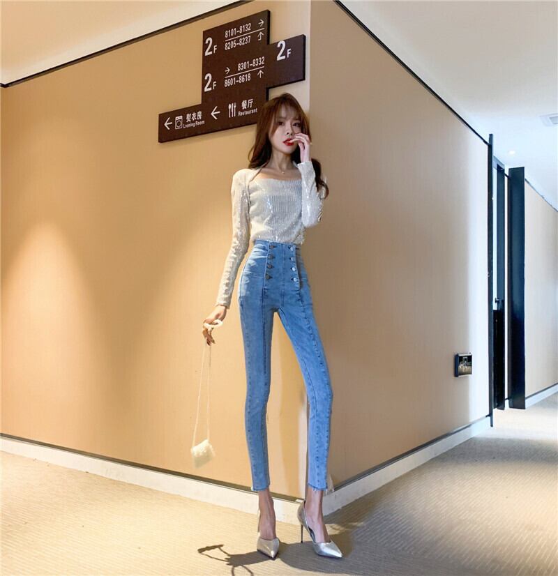 ハイウエストスキニーデニム ボトムス パンツ デニムパンツ ロング ロング丈 スリム タイト 細身 Iライン ハイウエスト デニム かわいい 大人可愛い きれいめ シンプル カジュアル 大人 上品 おしゃれ お洒落 大人可愛い 大人女子 こなれ感 ラフ キュート ガーリー 個性的 主役級 存在感 無地 春 夏 秋 10代 20代 30代 レディース 学生 通学 デート お出かけ 公園デビュー 女子会 休日 着回し 普段使い 韓国系 オルチャン サイズ S M L XL 色展開 ライトブルー
