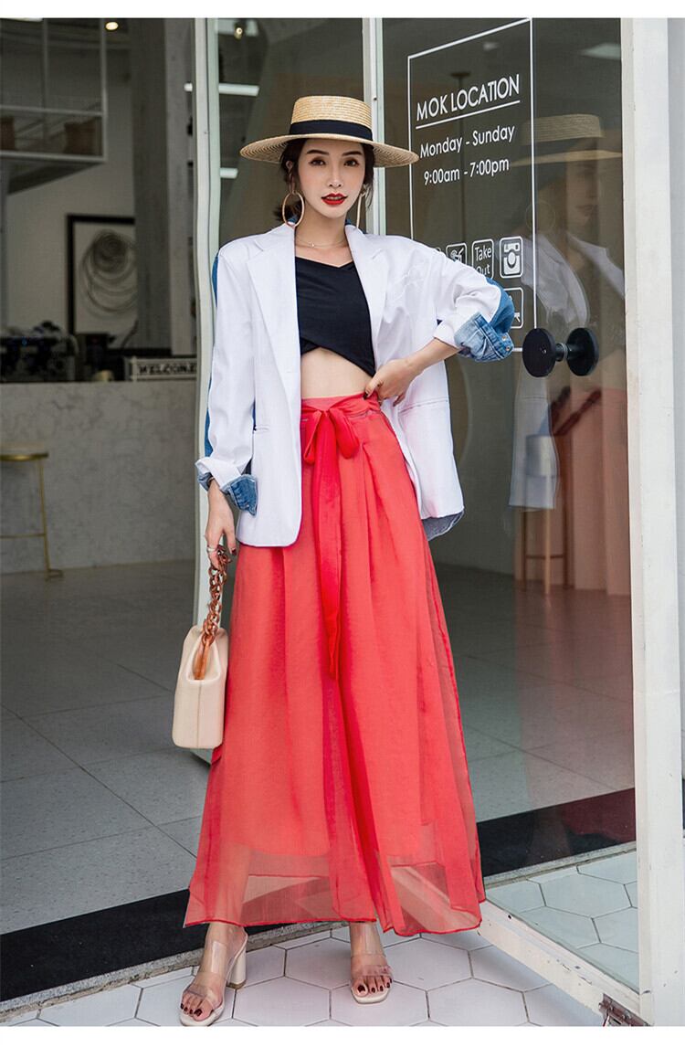 さりげない透け感が涼し気な印象のガウチョパンツ。