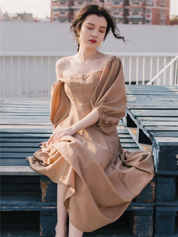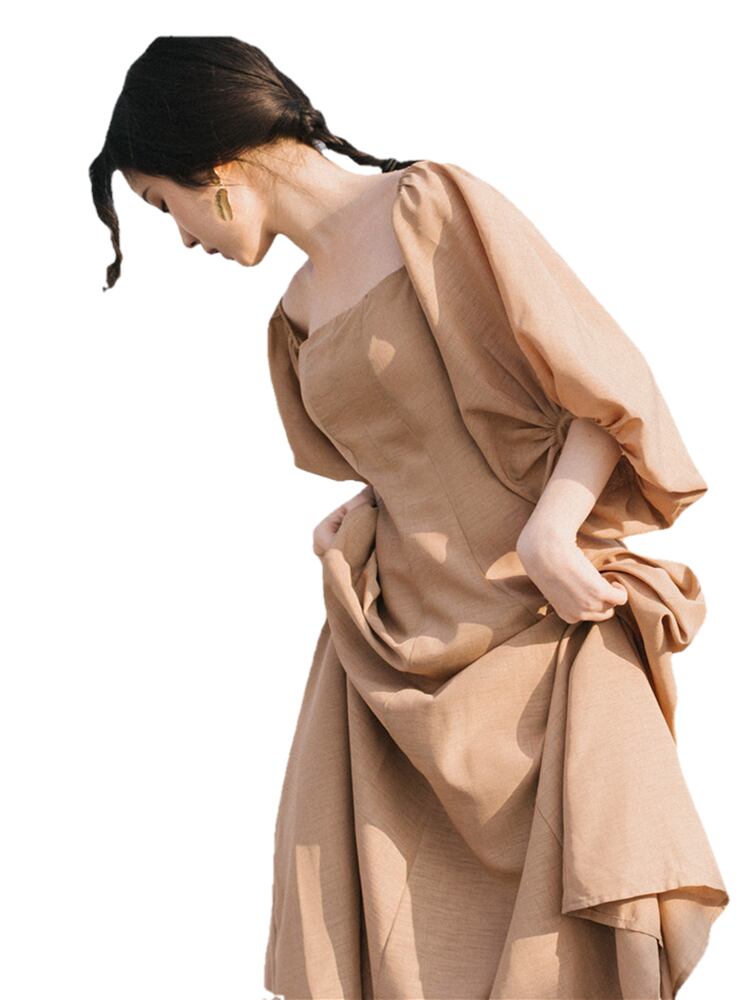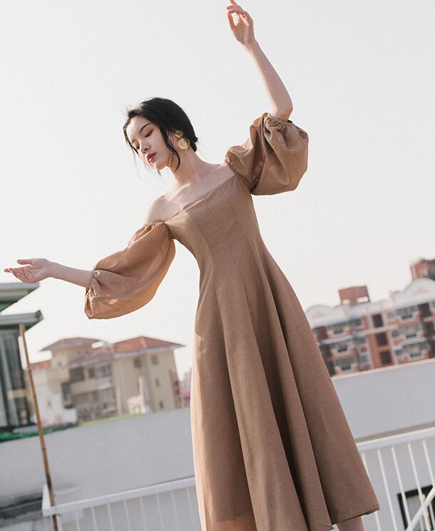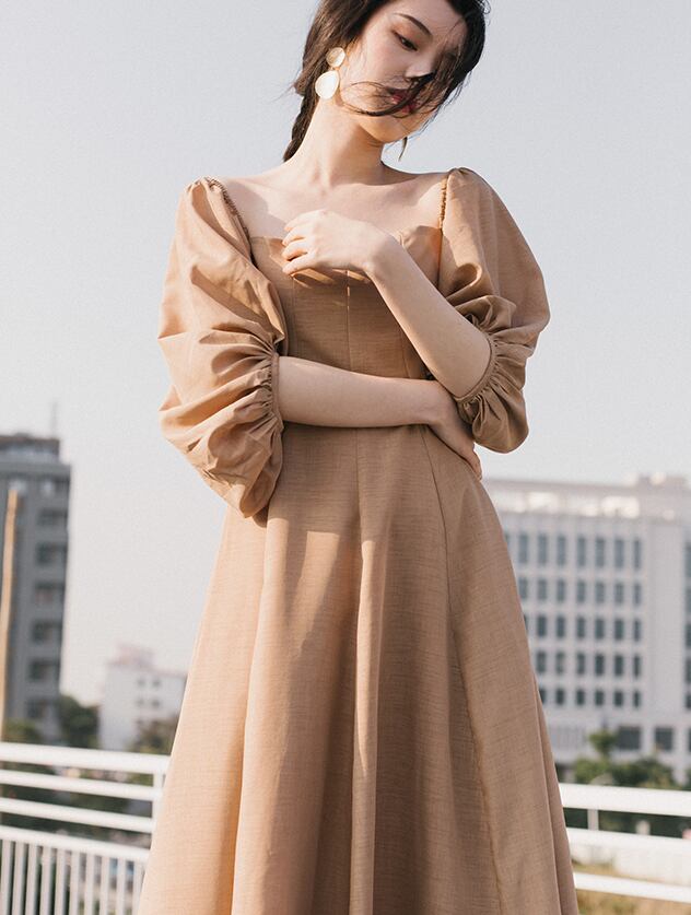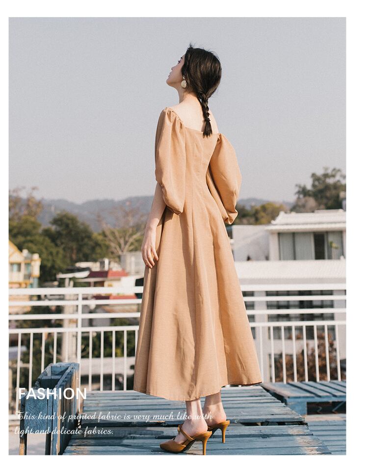フレアワンピース ワンピース フレアワンピース ワンピドレス ロング ロング丈 袖あり 5分袖 五分袖 パフスリーブ スクエアネック フレア かわいい 大人可愛い きれいめ シンプル カジュアル 大人 上品 おしゃれ お洒落 大人可愛い 大人女子 こなれ感 キュート ガーリー モダン 主役級 存在感 無地 春 夏 10代 20代 30代 レディース 学生 通学 デート お出かけ 女子会 休日 着回し 普段使い 重ね着 サイズ S M L 色展開 カーキ