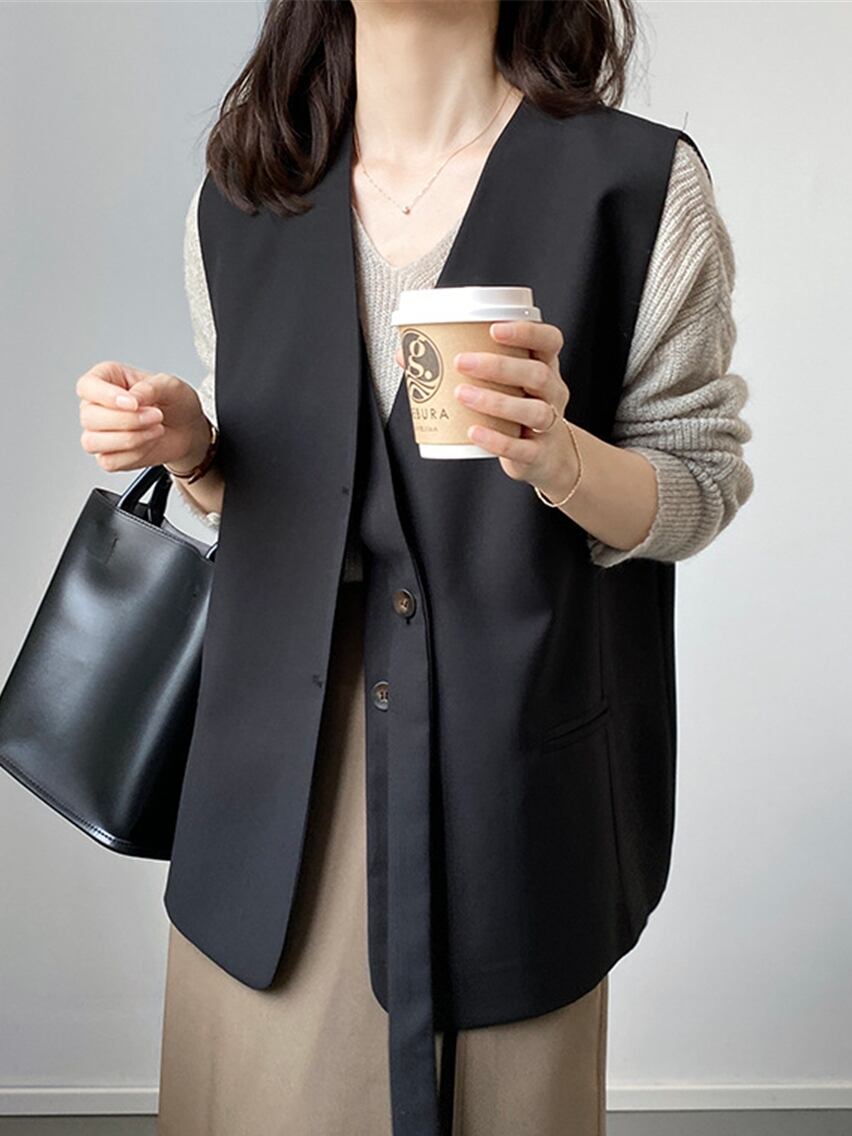 ベスト トップス ベスト 袖なし ノースリーブ Vネック 前開き かわいい 大人可愛い きれいめ シンプル カジュアル 大人 上品 おしゃれ お洒落 大人可愛い 大人女子 こなれ感 キュート ガーリー モダン 主役級 存在感 無地 春 夏 秋 10代 20代 30代 レディース OL 通勤 学生 通学 デート お出かけ 女子会 休日 着回し 普段使い 重ね着 サイズ M L 色展開 黒 ブラック カーキ