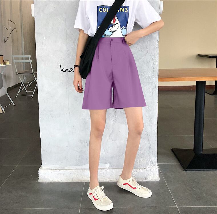 ボトムス パンツ 膝上 ハイウエスト きれいめ シンプル カジュアル 無地 春 夏 秋 10代 20代 30代 40代 50代 60代 レディース 女性用 ママ オフィス 通勤 お出かけ 休日 着回し 普段使い 楽ちん S M L XL 黒 ブラック 紫 パープル
