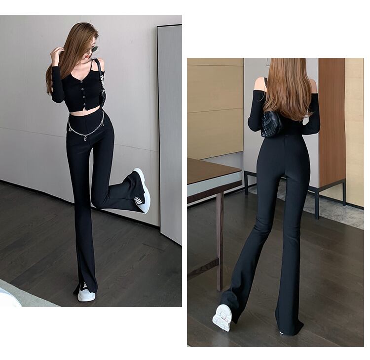 スタイリッシュな雰囲気のタイトフレアパンツ。