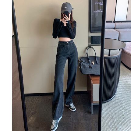 スタイルアップが叶うハイウエストストレートデニム。