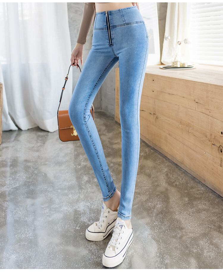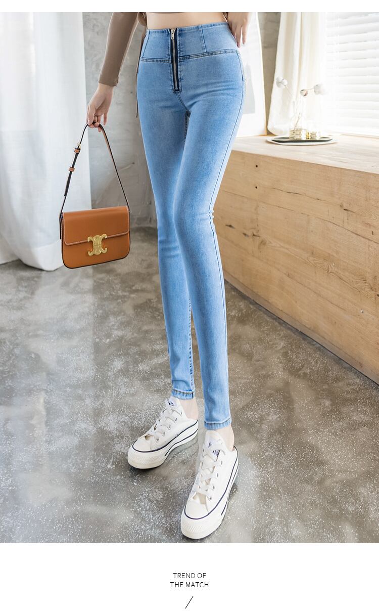 ベーシックなデザインのハイウエストスキニーデニムパンツ。