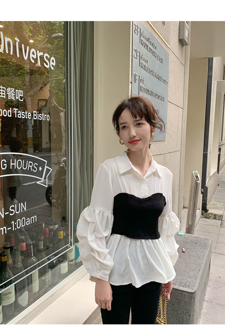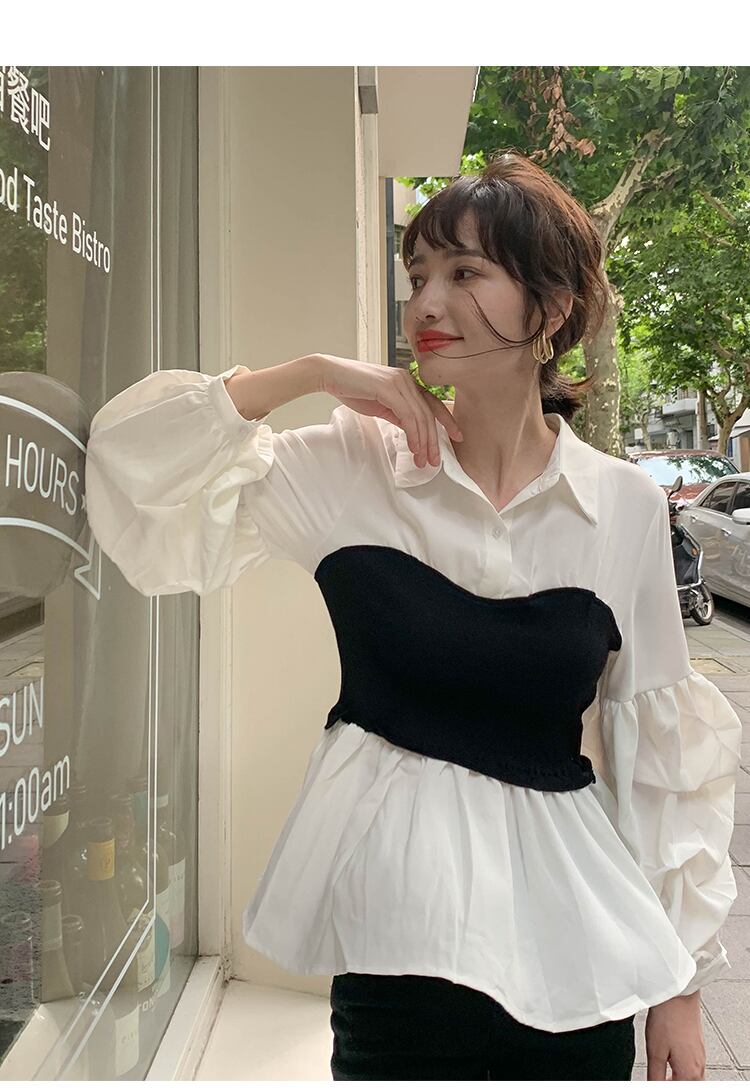 シャツレディースホワイトパッチワーク トップス シャツ 白シャツ ミディアム丈 長袖 ボリューム袖 襟付き フレア 切り替えデザイン ふわふわ 大人可愛い きれいめ シンプル カジュアル おしゃれ レトロ 大人女子 こなれ感 ラフ キュート ガーリー 無地 春 秋 10代 20代 30代 レディース 女性用 OL 通勤 学生 通学 デート お出かけ 女子会 お泊まり 休日 リゾート 旅行 着回し 普段使い XS S M ホワイト