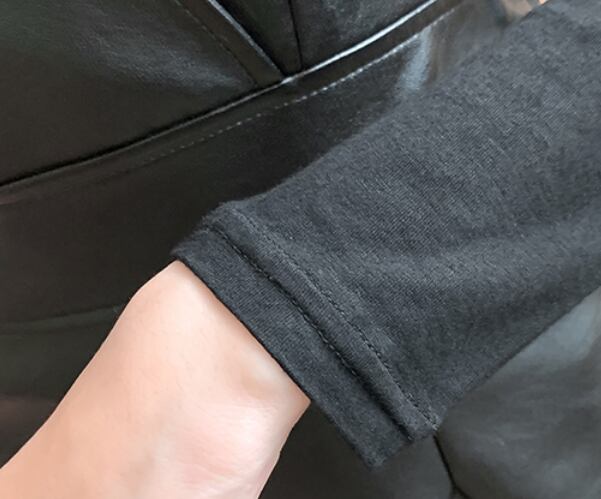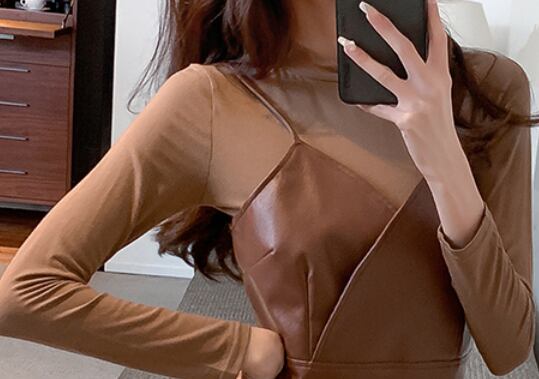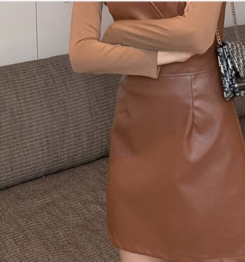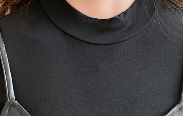 タイトなレザー風ワンピースとハイネックトップスのセットです。