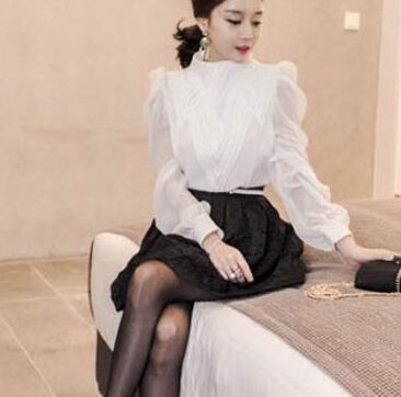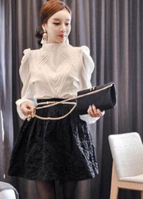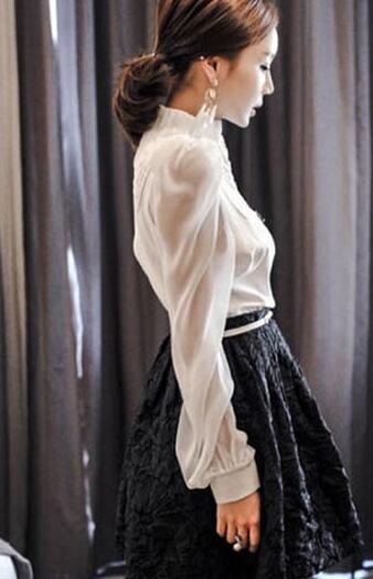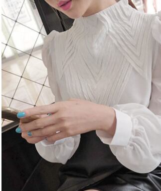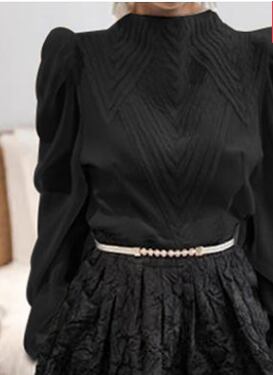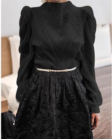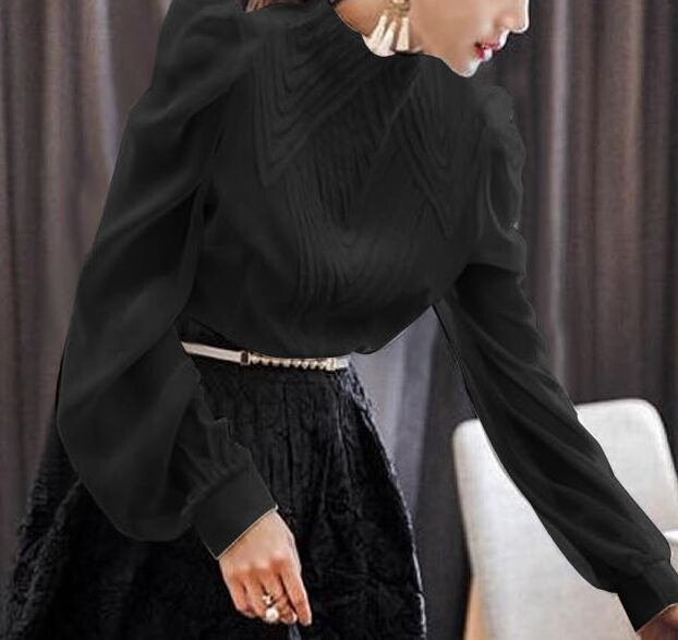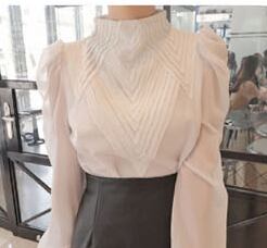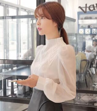 クラシックな雰囲気の長袖ハイネックブラウスです。