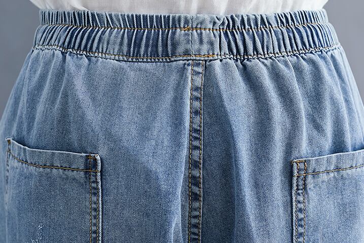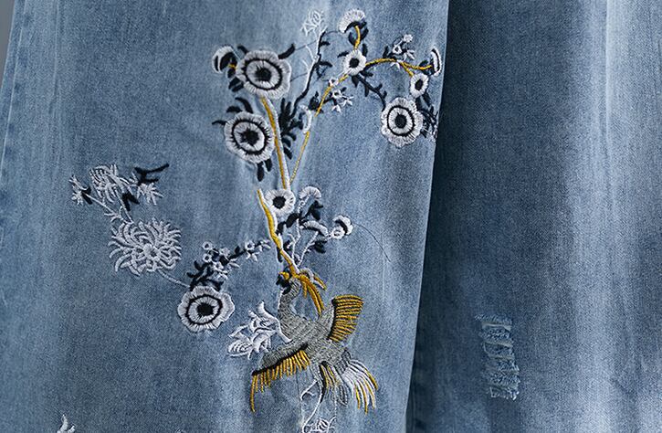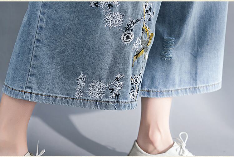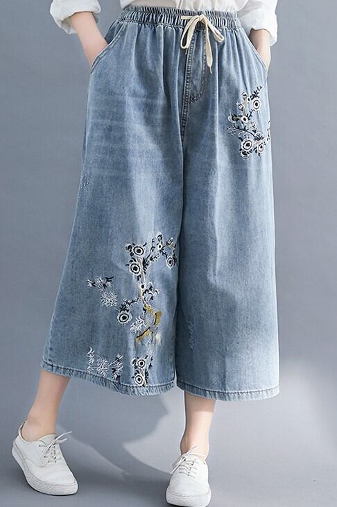 ボトムス パンツ ワイドパンツ アンクル丈 ワイド 刺繍 ポケット ウエストゴム ブルーデニム 大人可愛い カジュアル おしゃれ レトロ 大人女子 こなれ感 ラフ ルーズ 主役級 抜け感 花柄 春 夏 2022 20代 30代 40代 レディース お出かけ 公園デビュー 女子会 休日 アウトドア イベント 旅行 着回し 普段使い 韓国系 ファッション 楽ちん 体系カバー 新作 インスタ映え サイズ M L XL 2XL 3XL 4XL 色展開 ブルー