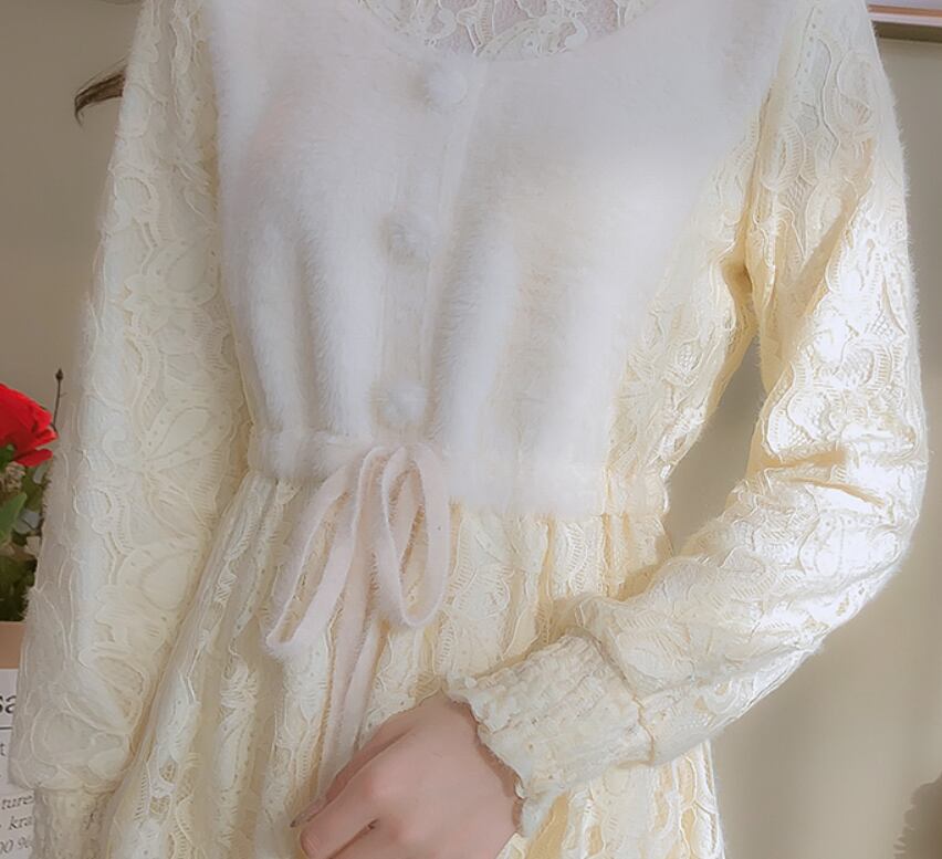 総レースとふわふわ生地のドッキングが可愛い長袖ワンピース。