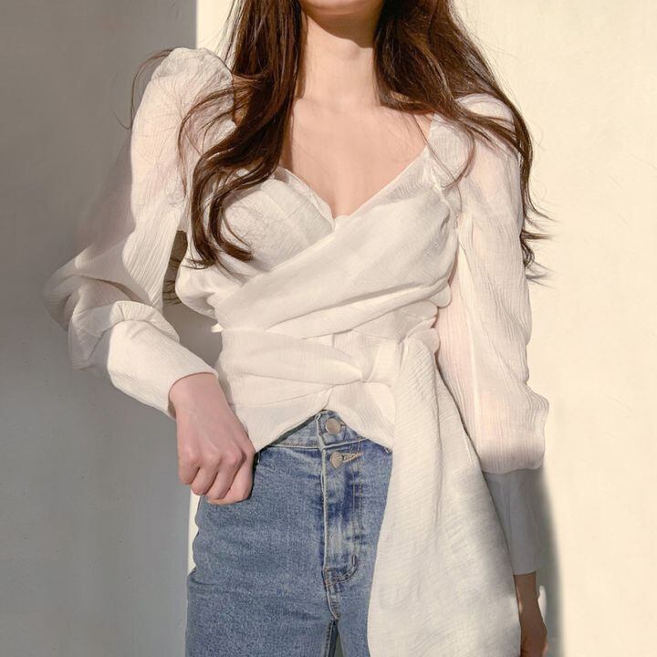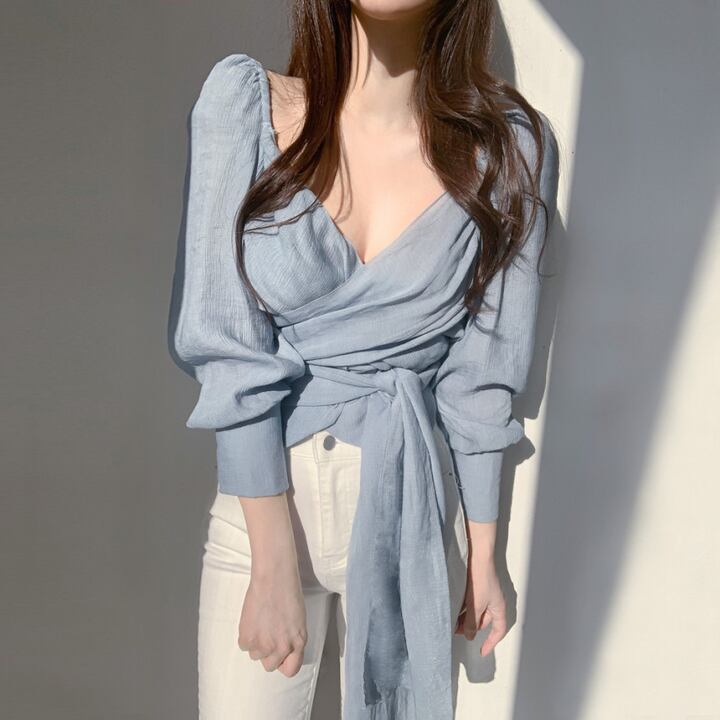 カシュクールブラウス トップス ブラウス 袖あり 長袖 Vネック カシュクール リボン かわいい 大人可愛い きれいめ シンプル カジュアル 大人 上品 おしゃれ お洒落 大人可愛い 大人女子 こなれ感 キュート ガーリー エレガント モダン 主役級 存在感 無地 春 秋 10代 20代 30代 レディース OL 通勤 学生 通学 デート お出かけ 女子会 休日 着回し 普段使い 重ね着 韓国系 オルチャン 色展開 白 ホワイト 黒 ブラック 青 ブルー