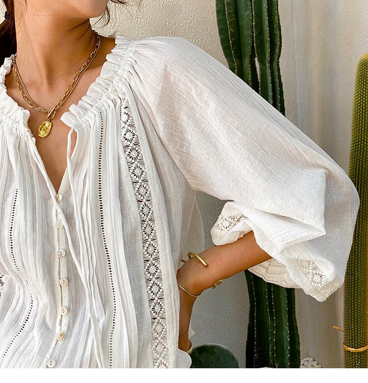長袖ブラウス トップス ブラウス ショート ショート丈 袖あり 長袖 Vネック レース フリル 前開き かわいい 大人可愛い きれいめ シンプル カジュアル 大人 上品 おしゃれ お洒落 大人可愛い 大人女子 こなれ感 キュート ガーリー エレガント モダン 主役級 存在感 無地 春 秋 10代 20代 30代 レディース 学生 通学 デート お出かけ 女子会 休日 着回し 普段使い 重ね着 韓国系 オルチャン サイズ S M L 色展開 白 ホワイト